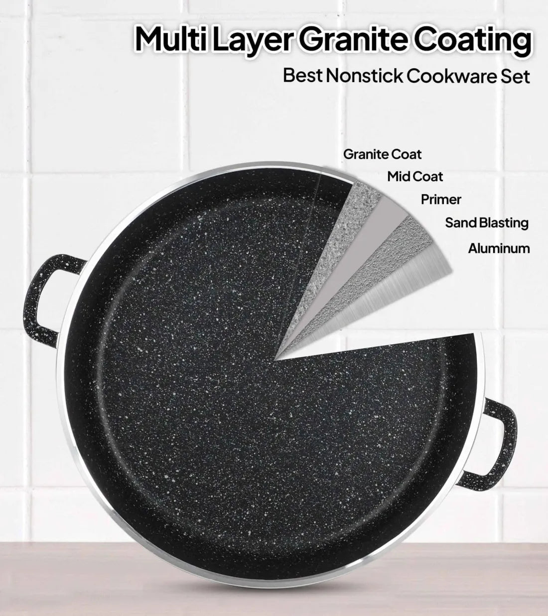 - -Ergonomic Fixed Aluminum Granite Coating Handles with Extra Heat Resistant Silicone Handle Cover : Extra Silicone Covers unique technology that keeps the pot or pans handles cool at all times. You'll turn to this cookware essential again and again! Keep A Firm Handle On Your Cooking With The Dual Grip Handle Design Of This Casserole Pan. Durable Grip Heat Resistant With An Elegant Finishing Touch To Accompany Your Cooking!