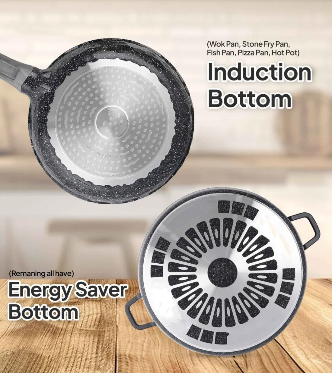 - -Compatible Induction Bottom : Conducts heat quickly and evenly, retain heat longer, saves energy and time which allows it to be placed evenly over heat source. Suitable for use on: Induction, gas, ceramic, electric, halogen & solid fuel cookers. Here's another benefit of aluminum: it heats up quickly & evenly, so you don't get the 'hot spots'.